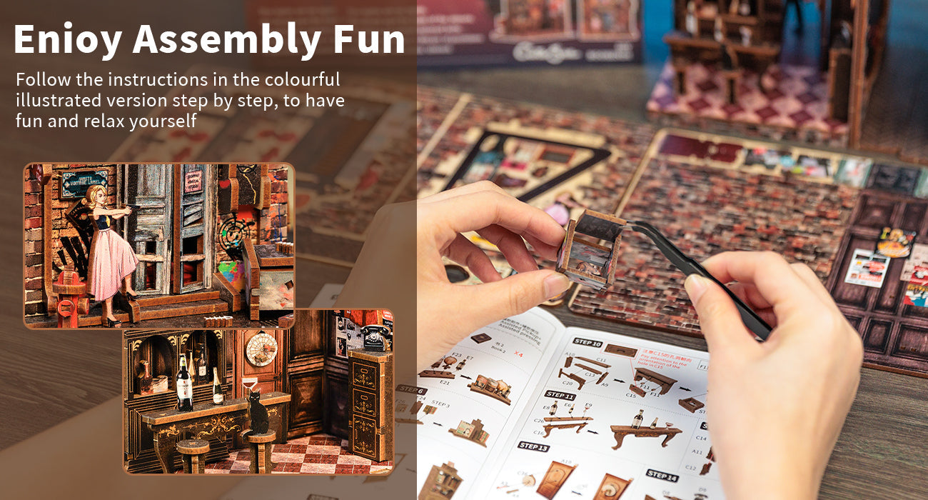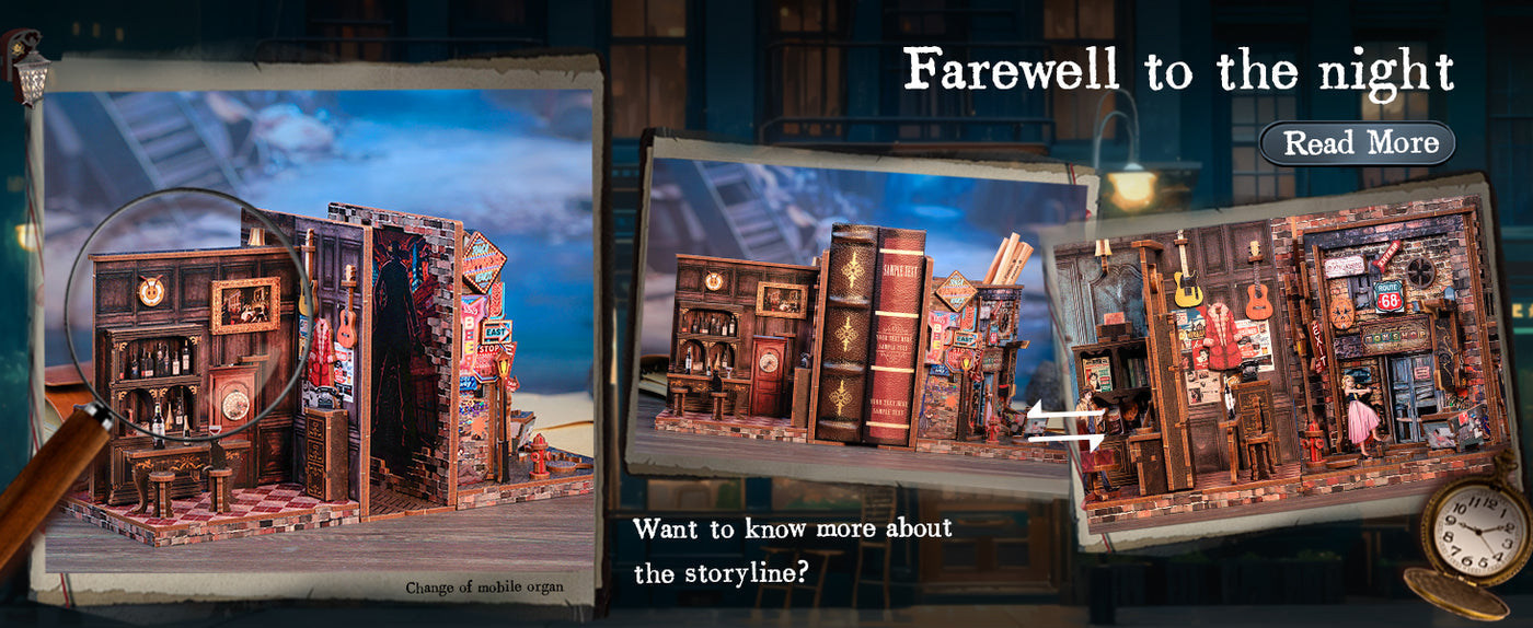 Discover the fascinating world of mystery with our Bookend: Crime Scene. This Book Nook is a 3D wooden miniature that becomes a perfect DIY puzzle for lovers of reading and suspense. Designed to embellish your bookshelf, this bookend not only keeps your books in place, but also adds an artistic and mysterious touch to your decor. With intricate details and an immersive atmosphere, this assembly kit is ideal for those who enjoy a good challenge while creating their own masterpiece.