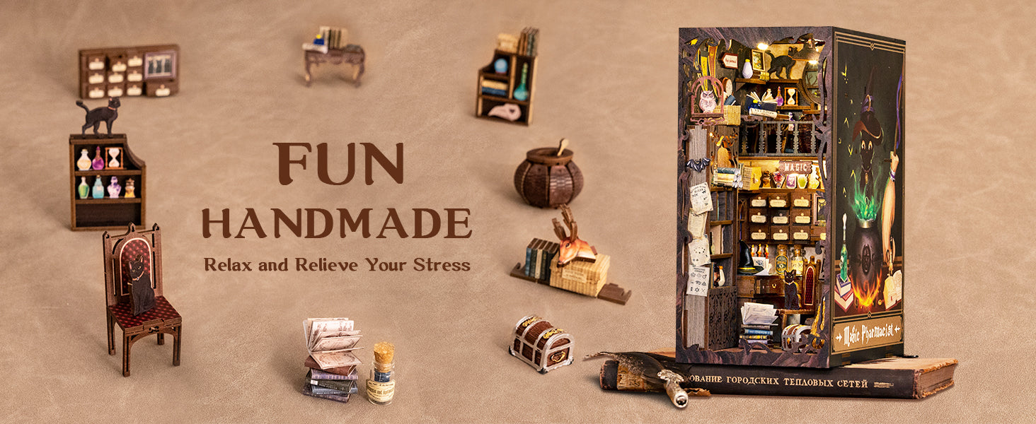 🎪 Discover below the complete collection of all our Book Nooks (wooden bookends to assemble yourself), all of them inspired by cozy rooms from movies and stories, iconic streets from different countries around the world and beautiful magical dream worlds 🪄