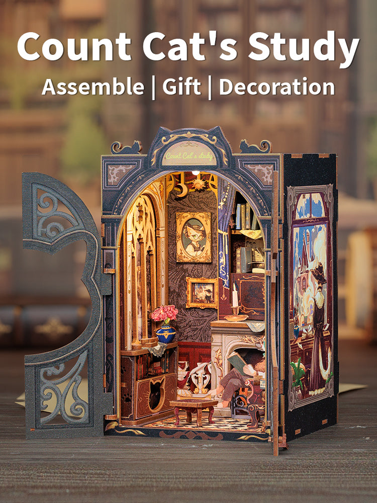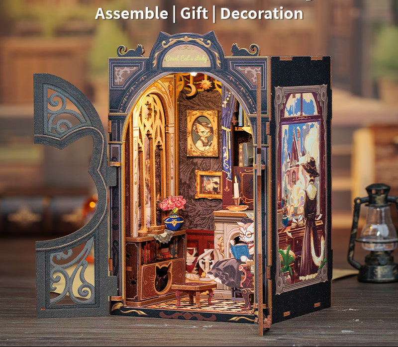 This Book Nook Classic Bookstore comes with pieces to be assembled by yourself. Even if you are a beginner at this, the colorful manual will guide you clearly step by step to complete this magical kit.