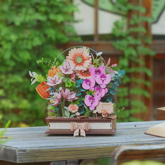 Una obra de arte que combina lo mejor de la literatura y la naturaleza 🌿📖. Este puzzle de madera 3D te permite construir un hermoso ramo de flores que brota desde un libro abierto. Con 552 piezas de madera ecológica, este kit DIY es una experiencia creativa, relajante y visualmente espectacular.