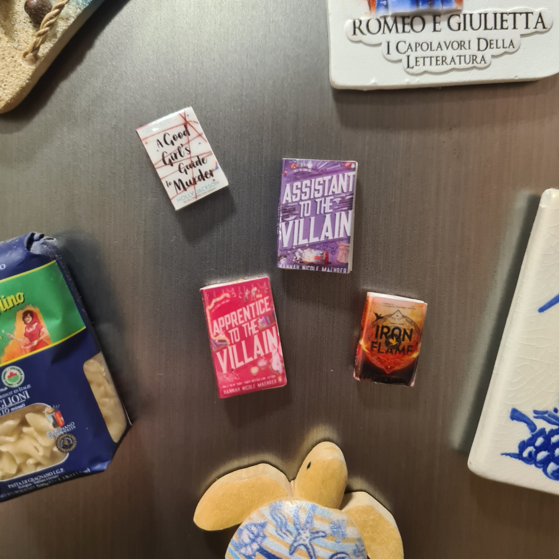 Feito com argila de polímero leve e de qualidade artística e aço inoxidável hipoalergênico (sem chumbo, cádmio e níquel). Cada pingente de livro é cuidadosamente esculpido e as laterais são esculpidas para criar uma aparência de livro real em miniatura. A capa é impressa em papel fotográfico da mais alta qualidade e, em seguida, uma camada protetora é adicionada para garantir que os pingentes durem muito. Cada livro tem aproximadamente 1,7 centímetros de altura (0,7 polegadas).
